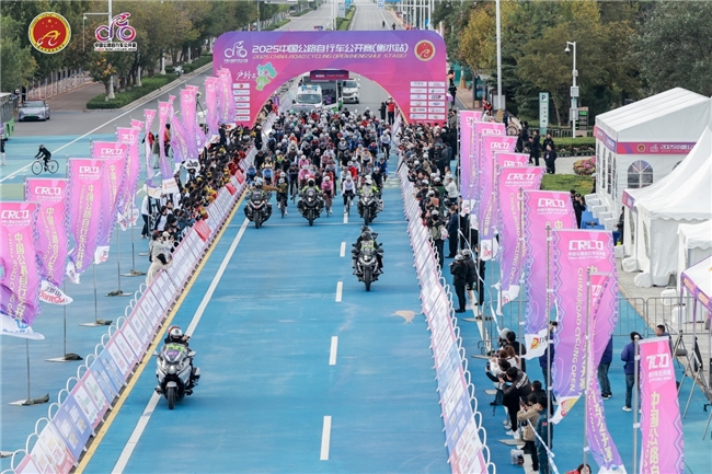10月18日上午,汇聚了5个国家和地区的顶尖车队与国内上千名业余精英齐聚河北衡水,共同见证以“湿地画廊,绿动新生”为主题的2025中国公路自行车公开赛(衡水站)在衡水湖畔激情开赛。参赛选手穿梭于湖城相映的秀美风光中,为秋日的衡水增添了一道靓丽的风景线。