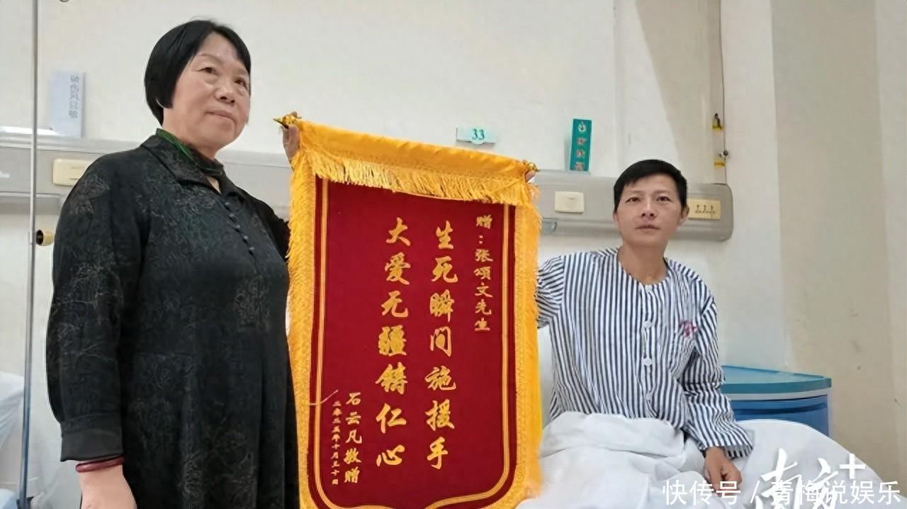 现场有围观者好心提醒张颂文“小心讹诈”,他一句“不用怕,人家现在正需要帮助”,没有豪言壮语,却像一束光刺破了深夜的寒意。更难得的是他救援时的沉着冷静。没有盲目搬动伤者,而是先借来摩托车开灯警示,组织众人合力抬车避免二次伤害,还细心检查伤者意识和骨折情况——这套“评、识、呼、查、救”的流程,连急救专家都称赞专业。更令被救助者和网友感动的是个小细节:石先生的玛瑙手串散落一地,张颂文蹲在地上一颗一颗捡起来,包好后轻轻放回伤者口袋。后来石先生康复后回忆起这事,眼里还含着泪:“那个蹲下捡珠子的身影,我一辈子都忘不了。”救护车到后,戴口罩的他被医护人员认出,确认现场稳妥后便悄悄离场,没留下只言片语。11月11日,康复中的石先生,在粤北人民医院为张颂文赠锦旗,题字“生死瞬间施援手,大爱无疆铸仁心”。石先生说,自己多年前也曾救助过别人,这次换自己被救助了,以后自己也会继续把助人为乐的精神和善举继续下去。