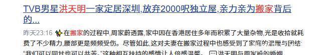 但从她的语气中,也能感受到对新生活的期待和对这个决定的认可。 如今洪天明一家已经在深圳安顿下来,开始了他们全新的生活篇章。 对于他们来说,搬家不仅仅是地理位置的改变,更是一次生活方式和心态上的调整。